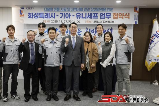 [½Åµ¿¾Æ¹æ¼Û=ÀÌÀçö±âÀÚ] È­¼ºÆ¯·Ê½Ã°¡ 27ÀÏ ½Ãû Áß¾ÓȸÀǽǿ¡¼­ À¯´Ï¼¼ÇÁ Çѱ¹À§¿øÈ¸, ±â¾Æ ÁÖ½Äȸ»ç¿Í ¡®´Ù¹®È­¾Æµ¿ Áö¿ø ¹× Áö¿ª»çȸ ¹Î°ü »ó»ý Çù·ÂÀ» À§ÇÑ ¾÷¹«Çù¾à¡¯À» ü°áÇß´Ù.