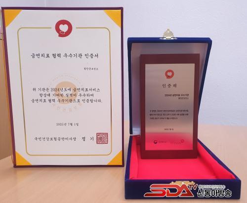 [½Åµ¿¾Æ¹æ¼Û °æ³²ÇÔ¾È=À̽ŵ¿±âÀÚ] ÇԾȱºº¸°Ç¼Ò´Â ±¹¹Î°Ç°­º¸Çè°ø´ÜÀÌ ÁÖ°üÇÑ 2025³â ±Ý¿¬Ä¡·áÁö¿ø»ç¾÷ Æò°¡¿¡¼­ ¡®±Ý¿¬Ä¡·á Çù·Â ¿ì¼ö±â°ü¡¯¿¡ ¼±Á¤µÅ ÀÎÁõ¼­¿Í ÀÎÁõÆÐ¸¦ ¹Þ¾Ò´Ù.