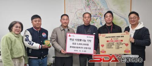 [½Åµ¿¾Æ¹æ¼Û Çϳ²½Ã=À̽ŵ¿±âÀÚ] Çϳ²½Ã´Â Áö³­ 5ÀÏ, ·Ôµ¥Ä¥¼ºÀ½·á¢ß °­µ¿ÁöÁ¡ÀÌ ¡®Çϳ² »ç¶ûäñ³ª´®¡¯¼º±ÝÀ¸·Î 300¸¸¿øÀ» Çϳ²½Ã¿¡ ±âŹÇß´Ù°í ¹àÇû´Ù.
