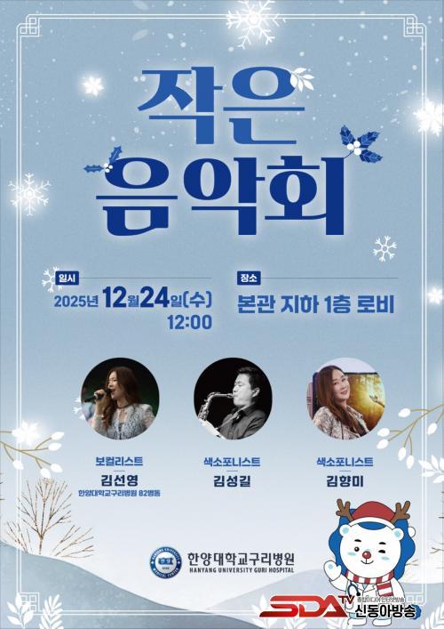[½Åµ¿¾Æ¹æ¼Û] ±¸¸® ÇѾç´ëÇб³º´¿ø ÁöÇÏ 1Ãþ ·Îºñ¿¡¼­ ¿À´Â 12¿ù 24ÀÏ, ȯ¿ì¿Í º¸È£ÀÚ, º´¿ø Á÷¿øµéÀ» À§ÇÑ µû¶æÇÑ ºÀ»ç °ø¿¬ ¡®ÀÛÀº À½¾Çȸ¡¯°¡ ¿­¸°´Ù. À̹ø À½¾Çȸ´Â º´¿ø ¿ø¸ñ½ÇÀÌ ÁÖÃÖÇϸç, ¿¬¸»À» ¸Â¾Æ º´¿ø °ø°£¿¡ À§·Î¿Í Èñ¸ÁÀÇ ¸Þ½ÃÁö¸¦ ÀüÇϴ Ưº°ÇÑ ÀÚ¸®·Î ¸¶·ÃµÆ´Ù.