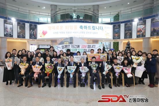 À̹ø ÅðÀÓ½ÄÀº ¿ÀÁ¦È« ȯ°æ±¹Àå, ¹ÚÇüÀÏ µ¿ºÎÃâÀå¼ÒÀå, ÃÖ¿ø±³ °¨»ç°üÀ» ºñ·ÔÇÑ 9¸íÀÇ ÅðÁ÷ÀÚ ¹× °¡Á·°ú µ¿·á, ¼±ÈÄ¹è °øÁ÷ÀÚµéÀÌ ÇÔ²²ÇÑ °¡¿îµ¥ ¡ãÀλç¹ß·ÉÅëÁö¼­ ±³ºÎ ¹× °ø·ÎÆÐ ¼ö¿© ¡ã±â³ä¿µ»ó ¹× ÃàÇϰø¿¬ ¡ãÅðÀÓ»ç µîÀ¸·Î ÁøÇàµÇ¾úÀ¸¸ç, Âü¼®ÀÚµéÀº µû¶æÇÑ ºÐÀ§±â ¼Ó¿¡¼­ ÅðÁ÷ÀÚµéÀÇ ³ë°í¸¦ µÇ»õ°å´Ù.
