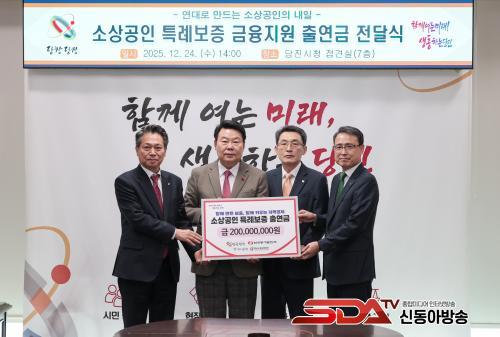 [½Åµ¿¾Æ¹æ¼Û=ÀÌÀçö±âÀÚ] ´çÁø½Ã´Â Áö³­ 24ÀÏ ½Ãû Á¢°ß½Ç¿¡¼­ ¿À¼ºÈ¯ ´çÁø½ÃÀå°ú ±èÈÆÈñ Çѱ¹µ¿¼­¹ßÀü ´çÁø¹ßÀüº»ºÎÀå, ÇÔÁ¾´ö ÇϳªÀºÇà Ãæ³²ºÏ¿µ¾÷º»ºÎ Áö¿ª´ëÇ¥, Á¶¼ÒÇà Ãæ³²½Å¿ëº¸ÁõÀç´Ü ÀÌ»çÀåÀÌ Âü¼®ÇÑ °¡¿îµ¥, ¼Ò»ó°øÀÎ ±ÝÀ¶Áö¿øÀ» À§ÇÑ ¡¸Æ¯·Êº¸Áõ Ã⿬±Ý Àü´Þ½Ä¡¹À» °³ÃÖÇß´Ù°í 26ÀÏ ¹àÇû´Ù.