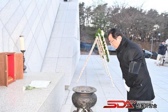 ÇÑÆí, ½Ã¹«½Ä¿¡ ¾Õ¼­ Çϳ²½Ã´Â °Ë´Ü»ê ÇöÃæÅ¾¿¡¼­ ¼ø±¹¼±¿­°ú È£±¹¿µ·ÉÀÇ ³ÌÀ» ±â¸®´Â ¡®½Å³â Âü¹è½Ä¡¯À» °ÅÇàÇß´Ù.