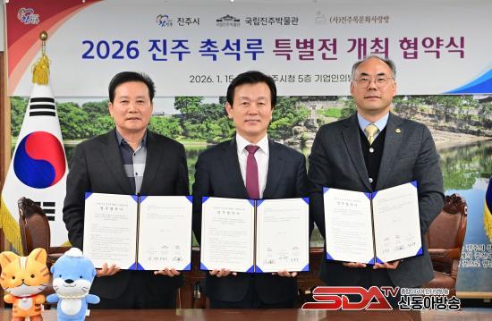 ÁøÁֽô 15ÀÏ ½Ãû 5Ãþ ±â¾÷ÀÎÀÇ ¹æ¿¡¼­ ¡®±¹¸³ÁøÁÖ¹Ú¹°°ü¡¯, ¡®(»ç)ÁøÁÖ¸ñ¹®È­»ç¶û¹æ¡¯°ú ¡¸2026 ÁøÁÖ Ã˼®·ç Ưº°Àü¡¹ÀÇ °³ÃÖ¸¦ À§ÇÑ ¾÷¹«Çù¾à(MOU)À» ü°áÇß´Ù°í ¹àÇû´Ù.