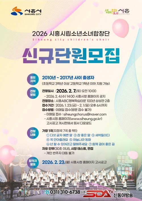 [½Åµ¿¾Æ¹æ¼Û ½ÃÈï½Ã=À̽ŵ¿±âÀÚ] ½ÃÈï½Ã´Â ½ÃÈïÀÇ ¹®È­»çÀý´ÜÀ¸·Î¼­ ¾Æ¸§´Ù¿î È­À½À» ÇÔ²² ¸¸µé¾î °¥ ¡®2026³âµµ ½ÃÈï½Ã¸³¼Ò³â¼Ò³àÇÕâ´Ü¡¯ÀÇ ½Å±Ô´Ü¿øÀ» °ø°³ ¸ðÁýÇÑ´Ù.