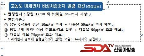ÇØ´ç Á¶Ä¡´Â ¡¸¹Ì¼¼¸ÕÁö Àú°¨ ¹× °ü¸®¿¡ °üÇÑ Æ¯º°¹ý¡¹¿¡ µû¶ó Ãʹ̼¼¸ÕÁö°¡ Àç³ ¼öÁØ¿¡ À̸¦ °ÍÀ¸·Î ÆÇ´ÜµÉ ¶§ ¹ß·ÉµÇ¸ç, ¹ß·É ´ÙÀ½ ³¯ ¿ÀÀü 6½ÃºÎÅÍ ¿ÀÈÄ 9½Ã±îÁö µµ³» Àü Áö¿ª¿¡¼ Àû¿ëµÈ´Ù.