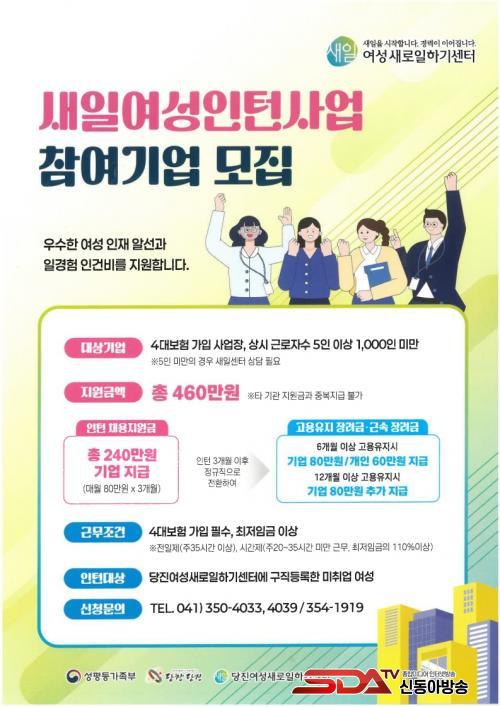 Âü¿©¸¦ Èñ¸ÁÇÏ´Â ±â¾÷°ú ¿©¼º ±¸Á÷ÀÚ´Â ´çÁø¿©¼º»õ·ÎÀÏÇϱ⼾Å͸¦ ÅëÇØ ±¸ÀΡ¤±¸Á÷ µî·Ï ÈÄ ½Åû¼¸¦ Á¦ÃâÇÏ¸é ½É»ç¸¦ ÅëÇØ °³º° Å뺸ÇÒ ¿¹Á¤ÀÌ´Ù. ±âŸ ÀÚ¼¼ÇÑ »çÇ×Àº ´çÁø½ÃÀÏÀÚ¸®Á¾ÇÕÁö¿ø¼¾ÅÍ ´©¸®Áý(¿©¼º»õÀϼ¾ÅÍ-»õÀÏ¿©¼ºÀÎÅÏÁ¦)À» Âü°íÇϰųª ´çÁø¿©¼º»õ·ÎÀÏÇϱ⼾ÅÍ(¢Ï041-350-4033, 4039)·Î ¹®ÀÇÇÏ¸é µÈ´Ù.