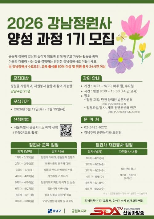 [½Åµ¿¾Æ¹æ¼Û °­³²±¸=À̽ŵ¿±âÀÚ] ²ÞÀÌ ¸ðÀÌ´Â µµ½Ã, ¹Ì·¡¸¦ ±×¸®´Â °­³²±¸(±¸Ã»Àå Á¶¼º¸í)°¡ »ýȰ±Ç °ø¿ø°ú ³ìÁö °ü¸® ¼ö¿ä Áõ°¡¿¡ ´ëÀÀÇØ Àü¹®¼ºÀ» °®Ãá ½Ã¹Î ÀηÂÀ» ¾ç¼ºÇÏ´Â ¡®°­³²Á¤¿ø»ç ¾ç¼º ±³À° 1±â ÇÁ·Î±×·¥¡¯À» ¿î¿µÇÑ´Ù. ±³À°Àº 3¿ù 23ÀϺÎÅÍ 5¿ù 20ÀϱîÁö ¾çÀçõ°ú ¼¼ÅØ ÀÏ´ë¿¡¼­ ÁøÇàµÈ´Ù.