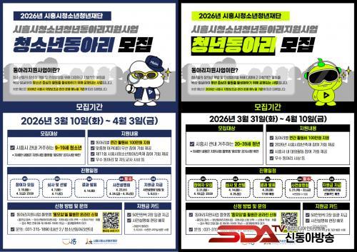 2026³â ½ÃÈï½Ã û¼Ò³â¡¤Ã»³â µ¿¾Æ¸® Áö¿ø»ç¾÷ ½ÅûÀº 3¿ù 10ÀÏ ¿ÀÀü 10½ÃºÎÅÍ Èï¸ðÀÓ Ç÷§ÆûÀ» ÅëÇØ °¡´ÉÇϸç, ÀÚ¼¼ÇÑ »çÇ×Àº Ç÷§Æû °øÁö»çÇ×ÀÇ ¾È³»¹®À» ÅëÇØ È®ÀÎÇÒ ¼ö ÀÖ´Ù. »ç¾÷ °ü·Ã ¹®ÀÇ´Â ½ÃÈï½Ãû¼Ò³â¼ö·Ã°ü û¼Ò³âµ¿¾Æ¸®¼¾ÅÍ(031-315-1890(³»¼±2))·Î ÇÏ¸é µÈ´Ù.