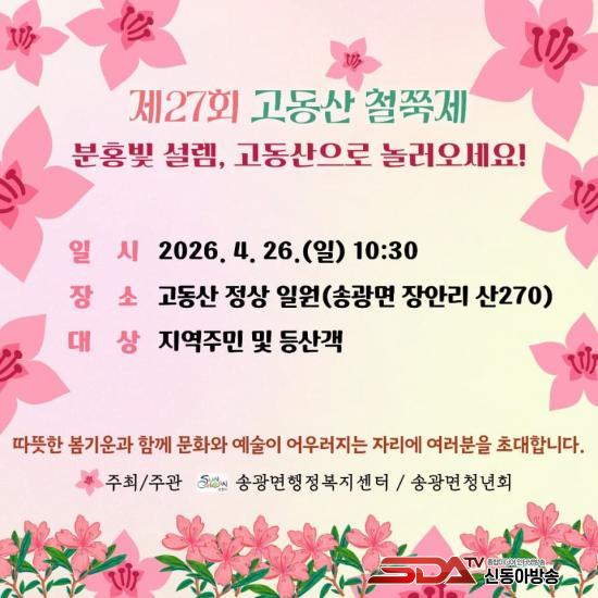 À̳¯ Çà»ç´Â ¿ÀÀü 10½Ã 30ºÐ, Ȱ±âÂù ¡®¼Û±¤¼Ò¸®³ª¡¯ À屸³Å¸ °ø¿¬°ú ÃÊû°¡¼ö °ø¿¬À¸·Î ¸·À» ¿Ã¸°´Ù. À̾îÁö´Â ±â³ä½Ä¿¡¼´Â °íµ¿»êÀÇ ¾È³ç°ú Áö¿ª ¹ßÀüÀ» ±â¿øÇÏ´Â »ê½ÅÁ¦°¡ ¾ö¼÷ÇÏ°Ô °ÅÇàµÉ ¿¹Á¤ÀÌ´Ù.