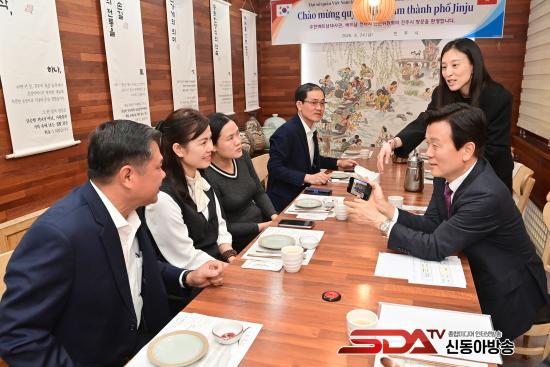 ´ëȸ ±â°£ Áß Àü³âµµ °³ÃÖÁöÀÎ º£Æ®³² ²«Åͽà ÀιÎÀ§¿øÈ¸ °úÇбâ¼úºÎ ±¹Àå µî °ü°èÀÚ¿Í ÁÖÇѺ£Æ®³²´ë»ç°ü ¼±â°üÀÌ ´ëȸÀåÀ» ã¾Æ ¼±¼ö´ÜÀ» °Ý·ÁÇÏ°í °æ±â¸¦ Âü°üÇß´Ù. À̵éÀº ÁøÁÖ½ÃÀÇ ¹®È¿Í ½ºÆ÷Ã÷¸¦ Á¢¸ñÇÑ ´ëȸ ¿î¿µ ¹æ½Ä¿¡ °ü½ÉÀ» º¸¿´À¸¸ç, ´ëȸ ¿î¿µ Àü¹Ý°ú Çà»ç ÁøÇà »óȲÀ» »ìÆìºÃ´Ù.