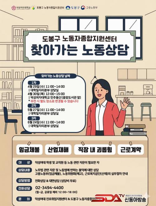 4¿ù 30ÀÏ ´ö¼º¿©ÀÚ´ëÇб³¿¡¼ ¿¸®´Â Á÷¹«¹Ú¶÷ȸ(JOB FAIR)¿¡¼´Â ¡®³ëµ¿¹ý·ü »ó´ã ºÎ½º¡¯¸¦ ¿î¿µÇØ ÇöÀå ¸ÂÃã »ó´ãÀ» Á¦°øÇÑ´Ù.