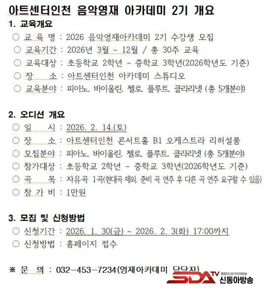 ¾ÆÆ®¼¾ÅÍÀÎõÀº ´ÙÀ½ ´Þ±îÁö À½¾Ç¿µÀç ¾ÆÄ«µ¥¹Ì 2±â Âü°¡ÀÚ¸¦ ¸ðÁýÇÑ´Ù. ½Åû¼ Á¢¼ö´Â 2¿ù 3ÀÏ ¿ÀÈÄ 5½Ã±îÁö´Ù. ºÐ¾ß´Â ÇǾƳë․¹ÙÀ̿ø°․ÿ·Î․ÇÃ·çÆ®․Ŭ¶ó¸®³Ý, ´ë»óÀº ÃʵîÇб³ 2ÇгâºÎÅÍ ÁßÇб³ 3Çгâ±îÁö´Ù.