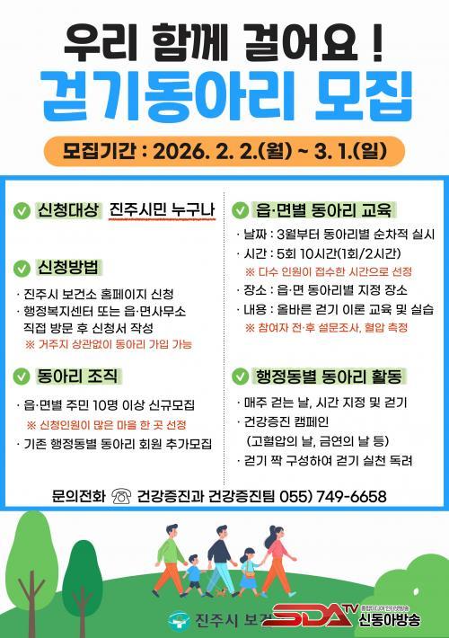 ¸ðÁý ±â°£Àº 2ÀϺÎÅÍ 3¿ù 1ÀϱîÁöÀ̸ç, ÁøÁÖ ½Ã¹ÎÀÌ¸é ´©±¸³ª Âü¿©ÇÒ ¼ö ÀÖ´Ù. ½ÅûÀº ÁøÁֽú¸°Ç¼Ò ´©¸®Áý ¶Ç´Â °¡±î¿î µ¿ÇàÁ¤º¹Áö¼¾Åͳª À¾¸é»ç¹«¼Ò¿¡ ÇÏ¸é µÈ´Ù.