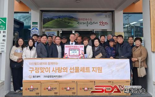 ¹Ú½ÅÀÏ ¿ùµå½¦¾î °æ³²ÁöºÎÀåÀº ¡°¼³ ¸íÀýÀ» ¸Â¾Æ °æÁ¦ÀûÀ¸·Î ¾î·Á¿òÀ» °Þ°í ÀÖ´Â ÀÌ¿ôµé¿¡°Ô ÀÛÀº À§·Î¿Í ±â»ÝÀÌ µÇ±æ ¹Ù¶ó´Â ¸¶À½À¸·Î ¼±¹°¼¼Æ®¸¦ ÁغñÇß´Ù¡±¸ç ¡°¾ÕÀ¸·Îµµ µµ¿òÀÌ ÇÊ¿äÇÑ °÷¿¡ Áö¼ÓÀûÀÎ ³ª´®À» ½ÇõÇÏ¸ç »ç¶ûÀ» ÀüÇϴ Ȱµ¿À» À̾°Ú´Ù¡±°í ÀüÇß´Ù.