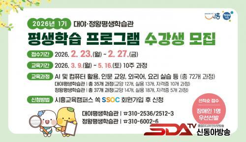 ¼ö° ½ÅûÀº 2¿ù 23ÀϺÎÅÍ 27ÀϱîÁö ½ÃÈï±³À°Ä·ÆÛ½º ½ï(SSOC) ´©¸®Áý¿¡¼ ȸ¿ø°¡ÀÔ ÈÄ °¡´ÉÇÏ´Ù. À̹ø ¸ðÁýºÎÅÍ´Â °øÁ¤ÇÑ Âü¿© ±âȸ Á¦°øÀ» À§ÇØ ±âÁ¸ Ãß÷ ¹æ½Ä¿¡¼ ¿Â¶óÀÎ ¼±Âø¼ø ½ÅûÀ¸·Î º¯°æµÆ´Ù. ±³¾ç¤ýÀÚ°ÝÁõ °úÁ¤Àº 2¿ù 23ÀÏ ¿ÀÀü 9½ÃºÎÅÍ, ½Ç¿ë °úÁ¤Àº 2¿ù 24ÀÏ ¿ÀÀü 9½ÃºÎÅÍ ½ÅûÀÌ ÁøÇàµÈ´Ù.