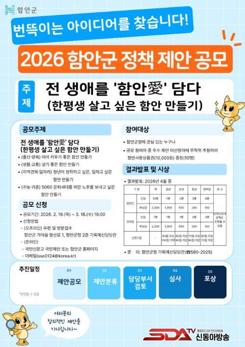 °ø¸ð¿¡´Â ÇÔ¾È ±ºÁ¤¿¡ °ü½É ÀÖ´Â ±¹¹Î ´©±¸³ª Âü¿©ÇÒ ¼ö ÀÖ´Ù. Á¢¼ö ¹æ¹ýÀº ±¹¹Î½Å¹®°í ¶Ç´Â ÇԾȱºÃ» ´©¸®Áý ¡®°í½Ã¡¤°ø°í¡¯¿¡ ÀÖ´Â Á¦¾È¼¸¦ ÀÛ¼ºÇØ ÇԾȱºÃ» ±âȹ¿¹»ê´ã´ç°üÀ¸·Î ¹æ¹® ¶Ç´Â ¿ìÆíÀ¸·Î º¸³»°Å³ª, ÀüÀÚ¿ìÆí(sse0124@korea.kr)À¸·Î Á¦ÃâÇÏ¸é µÈ´Ù.