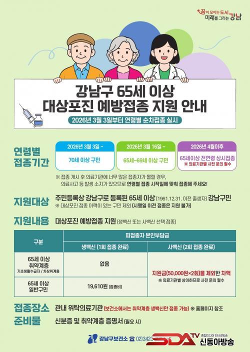 °­³²±¸, 65¼¼ ÀÌ»ó ´ë»óÆ÷Áø ¿¹¹æÁ¢Á¾ Áö¿ø È®´ë