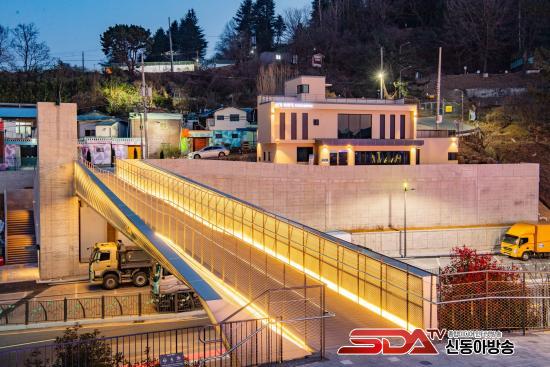 ¼³°è °ø¸ð »ç¾÷À¸·Î ÃßÁøµÈ ¡®ºñ°Å À°±³¡¯´Â µµ·Î µîÀ¸·Î ÀÎÇØ ´ÜÀýµÅ ÀÖ´ø ¡®¼Ò¸ÁÁø»ê À¯µî°ø¿ø¡¯°ú ¡®¸Á°æ°ø¿ø¡¯À» ÇϳªÀÇ º¸ÇàÃàÀ¸·Î ¿¬°áÇß´Ù´Â Á¡¿¡¼­ Å« Àǹ̰¡ ÀÖ´Ù. ³Êºñ 5m, ±æÀÌ 40m ±Ô¸ðÀÇ Ã¶°ñ ±¸Á¶¹°·Î Á¶¼ºµÈ ÀÌ À°±³´Â ¼¼·ÃµÈ ¾Ë·ç¹Ì´½ ÆÐ³Î(Panel) ¿ÜÀå°ú µû¶æÇÑ ¸ñÀç µ¦(Deck) ¹Ù´ÚÀ» °®Ãç ½Ã¹Îµé¿¡°Ô ¾ÈÀüÇϰí ÄèÀûÇÑ º¸Çà ȯ°æÀ» Á¦°øÇÑ´Ù.