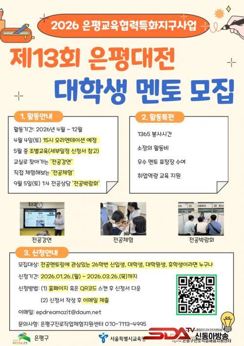 [½Åµ¿¾Æ¹æ¼Û ÀºÆò±¸=À̽ŵ¿±âÀÚ] ¼­¿ï ÀºÆò±¸´Â ÀºÆò±¸Áø·ÎÁ÷¾÷üÇèÁö¿ø¼¾ÅÍ ÁÖ°üÀ¸·Î ÁøÇàµÇ´Â Áø·Î¡¤ÁøÇÐ Áö¿ø»ç¾÷ ¡®Á¦13ȸ ÀºÆò´ëÀü¡¯¿¡ Âü¿©ÇÒ ´ëÇлý ¸àÅ並 ¸ðÁýÇÑ´Ù°í ¹àÇû´Ù.