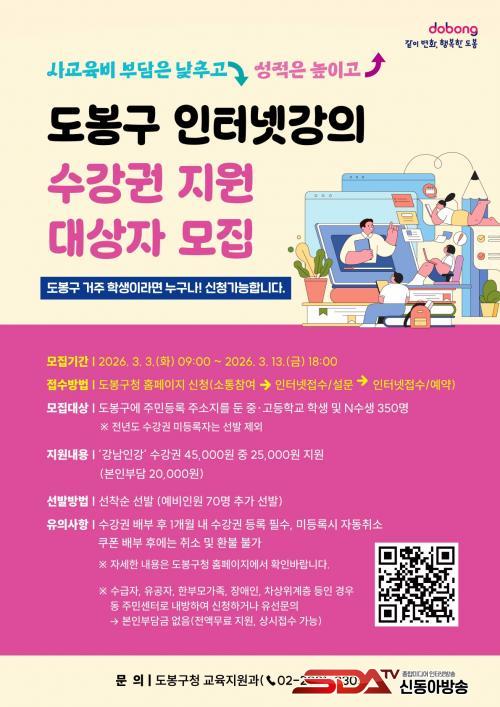 Áö¿ø ´ë»óÀº µµºÀ±¸¿¡ Áֹεî·Ï ÁÖ¼ÒÁö¸¦ µÐ Áß¡¤°íµîÇб³ Çлý°ú N¼ö»ýÀÌ´Ù.