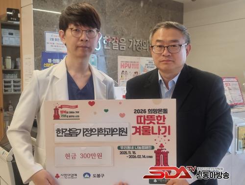 [½Åµ¿¾Æ¹æ¼Û µµºÀ±¸=À̽ŵ¿±âÀÚ] ¼­¿ï µµºÀ±¸ ½Ö¹®1µ¿ÀÌ Áö³­ 2¿ù 13ÀÏ ÇѰÉÀ½°¡Á¤ÀÇÇаúÀÇ¿øÀ¸·ÎºÎÅÍ ¡®Èñ¸Á¿Âµ¹ µû¶æÇÑ °Ü¿ï³ª±â¡¯ ¼º±Ý 300¸¸ ¿øÀ» ±âºÎ¹Þ¾Ò´Ù°í ¹àÇû´Ù.