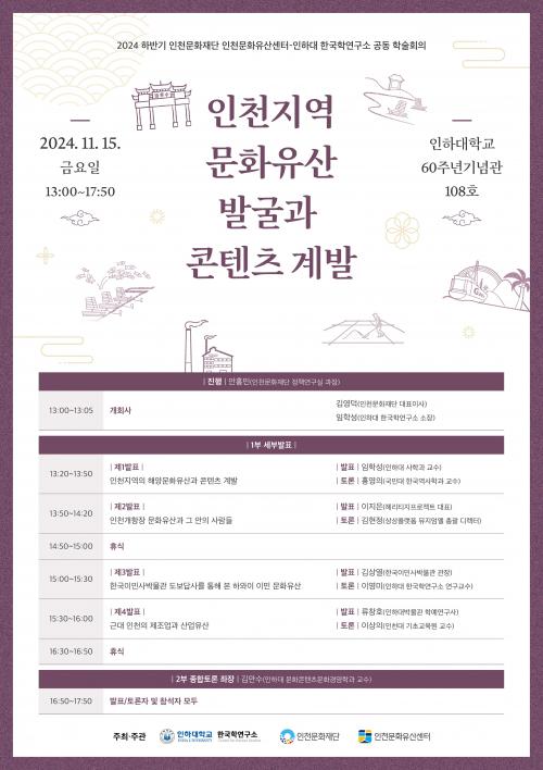 [½Åµ¿¾Æ¹æ¼Û ÀÎõ= À±¹Î½Ä±âÀÚ] ÀÎõ¹®È­Àç´Ü(´ëÇ¥ÀÌ»ç ±è¿µ´ö)°ú ÀÎÇÏ´ë Çѱ¹Çבּ¸¼Ò´Â ¡°ÀÎõÁö¿ª ¹®È­À¯»ê ¹ß±¼°ú ÄÜÅÙÃ÷ °è¹ß¡±À» ÁÖÁ¦·Î 11¿ù 15ÀÏ(±Ý) ¿ÀÈÄ 1½Ã ÀÎÇÏ´ëÇб³ 60ÁÖ³â±â³ä°ü¿¡¼­ °øµ¿ ÇмúȸÀǸ¦ °³ÃÖÇÑ´Ù. ¡Û À̹ø ÇмúȸÀÇ´Â Àß ¾Ë·ÁÁöÁö ¾Ê¡¦