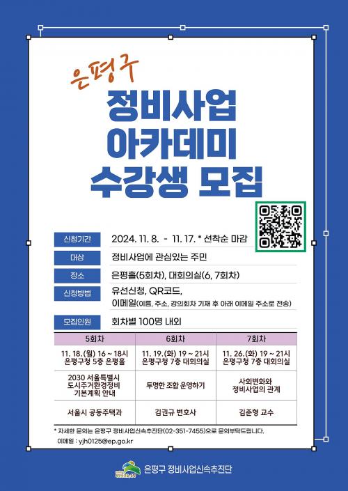 ÀºÆò±¸, 2024³â ÇϹݱâ Á¤ºñ»ç¾÷ ¾ÆÄ«µ¥¹Ì ¼ö°­»ý ¸ðÁý