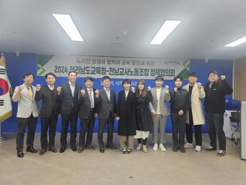 Àü¶ó³²µµ±³À°Ã»°ú Àü³²±³»ç³ëµ¿Á¶ÇÕÀº 18ÀÏ Ã»»ç ÁßȸÀǽǿ¡¼­ ³ë»ç ¾çÃø °ü°èÀÚµéÀÌ Âü¼®ÇÑ °¡¿îµ¥ ¡®2024³â Á¤Ã¥ÇùÀÇȸ °³È¸½Ä¡¯À» °¡Á³´Ù. Àü³²±³À°Ã»°ú Àü³²±³»ç³ëµ¿Á¶ÇÕÀº À̹ø Á¤Ã¥ÇùÀÇȸ¸¦ ÅëÇØ ±³À° ÇöÀåÀÇ ¸ñ¼Ò¸®¸¦ ¹Ý¿µÇÑ ±³À°È¯°æÀ» Á¶¼ºÇÏ°í ³ë»ç °£ »ó»ý¡¦