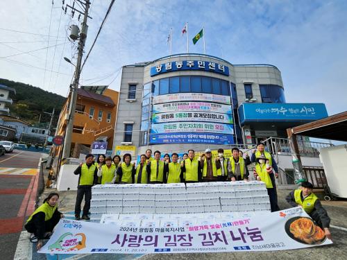 [½Åµ¿¾Æ¹æ¼ÛÀü³²¿©¼ö=±è±â³² ±âÀÚ] ±¤¸²µ¿ Áö¿ª»çȸº¸ÀåÇùÀÇü(À§¿øÀå ±è¼¼°ï)´Â Áö³­ 20ÀÏ ¡®°èÀýº° »ç¶ûÀÇ ±èÄ¡ ³ª´®¡¯ »ç¾÷ÀÇ ÀÏȯÀ¸·Î Ãë¾à°èÃþ¿¡ ±èÀå ±èÄ¡ 500kgÀ» Àü´ÞÇß´Ù. À̳¯ Áö¿ª»çȸº¸ÀåÇùÀÇü ȸ¿øµéÀº ±èÀå ±èÄ¡¸¦ 5kg¾¿ ¼ÒºÐÇØ 100¹Ú½º¸¦ ¸¶·ÃÇß¡¦