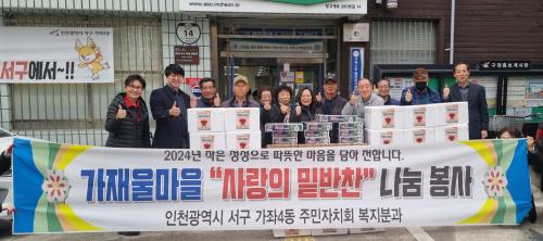 [½Åµ¿¾Æ¹æ¼Û ÀÎõ= À±¹Î½Ä±âÀÚ] ÀÎõ ¼­±¸ °¡ÁÂ4µ¿ ÁÖ¹ÎÀÚġȸ(ȸÀå ¿À½Âȯ, µ¿Àå °í±¤µæ)´Â °Ü¿ïö Ãë¾à°èÃþ¿¡°Ô µçµçÇÑ ¹ä¹ÝÂùÀÌ µÇ¾î ÁÙ ±èÀå±èÄ¡ ³ª´® Çà»ç¸¦ °¡Á³´Ù. À̹ø ±èÀå ³ª´®Àº °¡ÁÂ4µ¿ ÁÖ¹ÎÀÚġȸ º¹Áö¾ÈÀüºÐ°úÀÇ ½Ã¹ü»ç¾÷ÀÎ ¡®»ç¶ûÀÇ ¹Ø¹ÝÂù ³ª´®¡¦