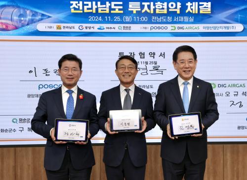 [½Åµ¿¾Æ¹æ¼ÛÀü³²±¤¾ç=¹Ú±¤¿Á±âÀÚ] ±¤¾ç½Ã¿Í Àü¶ó³²µµ°¡ ¢ßÆ÷½ºÄÚ¿Í ´ë±Ô¸ð ÅõÀÚÇù¾àÀ» ¸Î¾ú´Ù. Àúź¼Ò Á¦Ã¶»ê¾÷À¸·ÎÀÇ ÀüȯÀ» ÅëÇØ ź¼ÒÁ߸³À» À§ÇÑ ±¹Á¦»çȸÀÇ ¿òÁ÷ÀÓ¿¡ µ¿ÂüÇϰڴٴ ÃëÁö´Ù. ±¤¾ç½Ã´Â 25ÀÏ Àü³²µµÃ» ¼­ÀçÇʽǿ¡¼­ ¢ßÆ÷½ºÄÚ, ±¤¾ç½Ã, Àü¶ó³²µµ °£ Åõ¡¦