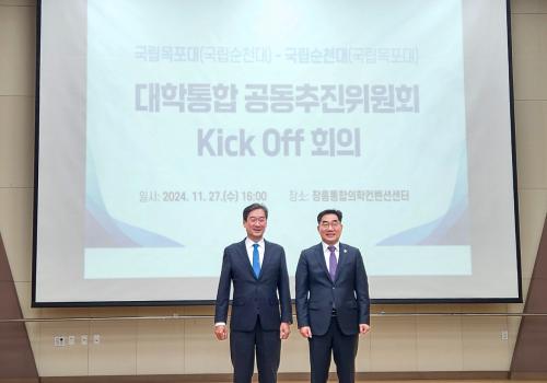 [½Åµ¿¾Æ¹æ¼ÛÀü³²¿©¼ö=±è±â³² ±âÀÚ] ±¹¸³¼øÃµ´ëÇб³(ÃÑÀå À̺´¿î)¿Í ±¹¸³¸ñÆ÷´ëÇб³(ÃÑÀå ¼ÛÇÏö)´Â ´ëÇÐ ÅëÇÕ ¹× ÅëÇÕÀÇ´ë ÃßÁø¿¡ ±ØÀû ÇÕÀÇÇÑ Áö 2ÁÖ ¸¸¿¡ º»°Ý ÅëÇÕ ³íÀǸ¦ À§ÇÑ ¡®°øµ¿ÃßÁøÀ§¿øÈ¸¡¯¸¦ Ãâ¹ü½ÃÄ×´Ù°í ¹àÇû´Ù. ¡®°øµ¿ÃßÁøÀ§¿øÈ¸¡¯´Â ¾ç ´ëÇÐ ÃÑÀ塦