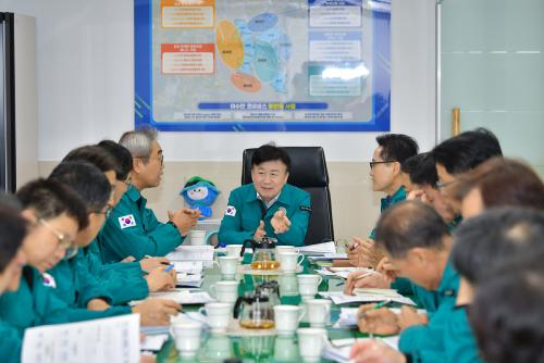 [½Åµ¿¾Æ¹æ¼ÛÀü³²¿©¼ö=±è±â³² ±âÀÚ] Á¤±â¸í ¿©¼ö½ÃÀåÀÌ 16ÀÏ ¿ÀÀü ½ÃÀå½Ç¿¡¼­ ´ëÅë·É źÇÙ¼ÒÃß¾È °¡°á¿¡ µû¸¥ ¡®±ä±Þ ¹Î»ý¾ÈÁ¤´ëÃ¥ ȸÀÇ¡¯¸¦ ÁÖÀç, ¡°¹Î»ý¾ÈÁ¤¿¡ ÃÑ·ÂÀ» ±â¿ïÀÏ °Í¡±À» ÁÖ¹®Çß´Ù. ½Ã´Â À̳¯ ±ä±ÞȸÀÇ¿¡¼­ 4±Þ ÀÌ»ó °£ºÎ°ø¹«¿ø µîÀÌ Âü¼®ÇÑ °¡¿îµ¥, ¡¦
