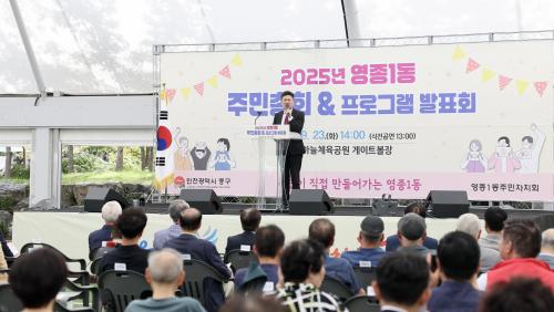 [½Åµ¿¾Æ¹æ¼Û ÀÎõ=À±¹Î½Ä±âÀÚ] ÀÎõ Áß±¸ ¿µÁ¾1µ¿ ÁÖ¹ÎÀÚġȸ(ȸÀå Á¶Àç±Ù)´Â Áö³­ 23ÀÏ ÇÏ´ÃüÀ°°ø¿ø °ÔÀÌÆ®º¼Àå¿¡¼­ ÁֹΠ150¿© ¸íÀÌ Âü¼®ÇÑ °¡¿îµ¥ ¡®2025³â ¿µÁ¾1µ¿ ÁÖ¹ÎÃÑȸ¡¤ ÇÁ·Î±×·¥ ¹ßǥȸ¡¯¸¦ ¼ºÈ²¸®¿¡ °³ÃÖÇß´Ù. À̹ø ÃÑȸ´Â ÁÖ¹ÎÀÚÄ¡¼¾ÅÍ ¼ö°­»ýµéÀÇ °ø¡¦