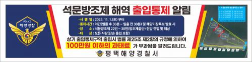 [½Åµ¿¾Æ¹æ¼Û=ÀÌÀçö±âÀÚ] ÆòÅÃÇØ¾ç°æÂû¼­(¼­Àå ¿ìä¸í)´Â ¿À´Â 11¿ù 1ÀÏ (Åä)ºÎÅÍ Ãæ³² ´çÁø½Ã ¼®¹®¹æÁ¶Á¦ 22¹ø~30¹ø(¹æÁ¶Á¦³¡´Ü) ÀÎ±Ù ÇØ¾ÈÀ» ¾ß°£½Ã°£ ¹× ÇØ¾ç±â»óƯº¸ ¹ßÈ¿ ½Ã ÃâÀÔÅëÁ¦ Àå¼Ò·Î ÁöÁ¤ÇÑ´Ù°í ¹àÇû´Ù. À̹ø Á¶Ä¡´Â ¾ß°£¿¡ ¹«ºÐº°ÇÏ°Ô ÀÌ·ïÁö´Â ÇØ·çÁú¡¦