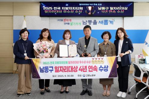 [½Åµ¿¾Æ¹æ¼Û ÀÎõ=À±¹Î½Ä±âÀÚ] ÀÎõ½Ã ³²µ¿±¸°¡ °í¿ë³ëµ¿ºÎ°¡ ÁÖÃÖÇϴ¡®2025³â Àü±¹ Áö¹æÀÚÄ¡´Üü ÀÏÀÚ¸® ´ë»ó¡¯¿¡¼­ Áö¿ª ÀÏÀÚ¸® ¸ñÇ¥ °ø½ÃÁ¦ ºÎ¹® Àå°ü»ó(¿ì¼ö»ó)À» ¼ö»óÇß´Ù. ÀÌ·Î½á ³²µ¿±¸´Â ÇØ´ç ºÎ¹®¿¡¼­ 4³â ¿¬¼Ó ¼ö»óÀ̶ó´Â Äè°Å¸¦ ´Þ¼ºÇß´Ù. 2ÀÏ ±¸¿¡¡¦