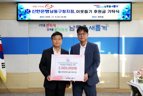 [½Åµ¿¾Æ¹æ¼Û ÀÎõ=À±¹Î½Ä±âÀÚ]ÀÎõ½Ã ³²µ¿±¸´Â ÃÖ±Ù ½ÅÇÑÀºÇà ³²µ¿±¸Ã»ÁöÁ¡ÀÌ ¡®2025 ÁÖ¹ÎÀÚÄ¡ ÇѸ¶´ç ÀÌ¿ôµ½±â ÈÄ¿ø±Ý¡¯ 200¸¸ ¿øÀ» ±âŹÇß´Ù°í 10ÀÏ ¹àÇû´Ù. ±¸Ã»Àå Áý¹«½Ç¿¡¼­ ¿­¸° ±âŹ½Ä¿¡´Â ¹ÚÁ¾È¿ ³²µ¿±¸Ã»Àå, ÀÓÃáÈ« ½ÅÇÑÀºÇà ³²µ¿±¸Ã»ÁöÁ¡Àå, ÀÓÅÂÇå ÁֹΡ¦
