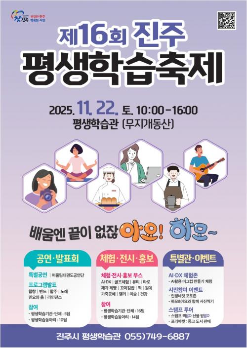 [½Åµ¿¾Æ¹æ¼Û °æ³²ÁøÁÖ=³²±Ã¿µ±â±âÀÚ] ÁøÁֽô ¡®Á¦16ȸ ÁøÁÖÆò»ýÇнÀÃàÁ¦¡¯¸¦ ¿À´Â 22ÀÏ ¿ÀÀü 10½ÃºÎÅÍ ¿ÀÈÄ 4½Ã±îÁö Æò»ýÇнÀ°ü ¹«Áö°³µ¿»ê¿¡¼­ °³ÃÖÇÑ´Ù°í ¹àÇû´Ù. À̹ø ÃàÁ¦´Â ¡®¹è¿ò¿£ ³¡ÀÌ ¾øÀݾƿä! Æò»ýÇнÀµµ½Ã Çϸð~ ÁøÁÖ!¡¯¸¦ ÁÖÁ¦·Î, 45¿© °³ Æò»ýÇнÀ ±â¡¦