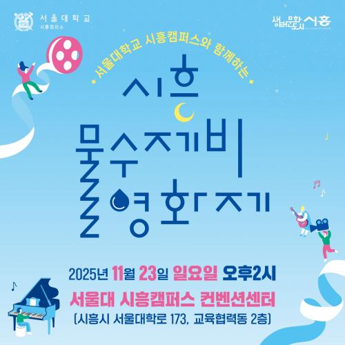 [½Åµ¿¾Æ¹æ¼Û ½ÃÈï½Ã=À̽ŵ¿±âÀÚ] ½ÃÈï½Ã´Â Áö¿ª ´ëÇ¥ ¹®È­ Çà»çÀÎ ¡®¹°¼öÁ¦ºñ¿µÈ­Á¦¡¯¸¦ ¿À´Â 11¿ù 23ÀÏ ¼­¿ï´ëÇб³ ½ÃÈïÄ·ÆÛ½º ÄÁº¥¼Ç¼¾ÅÍ¿¡¼­ °³ÃÖÇÑ´Ù. ¹°¼öÁ¦ºñ¿µÈ­Á¦´Â ¸Å³â ½Ã¹Î Âü¿© ¼Ó¿¡ ¼ºÀåÇØ ¿Â ½ÃÈï½ÃÀÇ ´ëÇ¥Àû ¹®È­ Çà»ç´Ù. ¿ÃÇØ´Â ¼­¿ï´ë ½ÃÈïÄ·ÆÛ½º¿ÍÀÇ ¡¦