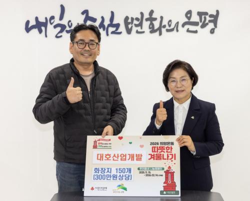 [½Åµ¿¾Æ¹æ¼Û ÀºÆò±¸=À̽ŵ¿±âÀÚ] ¼­¿ï ÀºÆò±¸´Â Áö³­ 2ÀÏ ´ëÈ£»ê¾÷°³¹ß°ú ÇÔ²² »ç¶ûÀÇ ¼ºÇ° Àü´Þ½ÄÀ» °¡Á³´Ù°í ¹àÇû´Ù. ¢ß°ÇÀÏCNS¿Í ´ëÈ£»ê¾÷°³¹ßÀº Áö¿ª ³» ¾î·Á¿î ÀÌ¿ôµéÀ» À§ÇØ È­ÀåÁö 30·Ñ 300°³¸¦ ±âºÎÇßÀ¸¸ç, ±âºÎµÈ ¹°Ç°Àº °ü³» 6°³ µ¿Áֹμ¾Å͸¦ ÅëÇØ Àú¼Òµæ¡¦