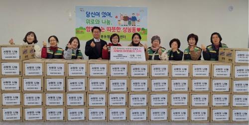 [½Åµ¿¾Æ¹æ¼Û °æ³²ÁøÁÖ=³²±Ã¿µ±â±âÀÚ] ÁøÁֽà »óºÀµ¿ÇàÁ¤º¹Áö¼¾ÅÍ´Â Áö³­ 9ÀÏ »óºÀµ¿ ¿©¼º¹Î¹æÀ§±âµ¿´ë°¡ ¿¬¸»À» ¸Â¾Æ Áö¿ªÀÇ ¾î·Á¿î ÀÌ¿ôÀ» À§ÇØ 370¸¸ ¿ø »ó´çÀÇ ¶ó¸é 100»óÀÚ¸¦ ±âŹÇß´Ù°í ¹àÇû´Ù. ±âŹµÈ ¼ºÇ°Àº »óºÀµ¿ °ü³» ¼Ò¿Ü°èÃþ, Àú¼ÒµæÃþ Çлý, µ¶°Å¾î¸£½Å¡¦