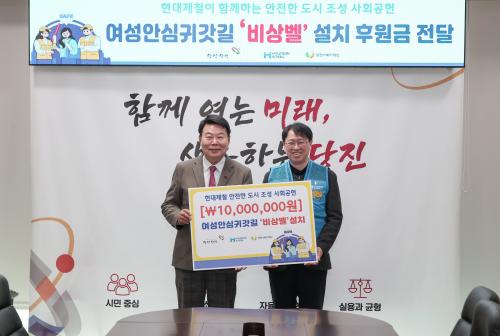 [½Åµ¿¾Æ¹æ¼Û=ÀÌÀçö±âÀÚ] ´çÁø½Ã´Â Áö³­ 22ÀÏ ´çÁø½Ãû 7Ãþ Á¢°ß½Ç¿¡¼­ Çö´ëÁ¦Ã¶(ÁÖ), ´çÁø½Ãº¹ÁöÀç´Ü °ü°èÀÚµéÀÌ Âü¼®ÇÑ °¡¿îµ¥ ¿©¼º¾È½É±Í°«±æ Á¶¼º»ç¾÷À» À§ÇÑ ÈÄ¿ø±Ý Àü´Þ½ÄÀ» °¡Á³´Ù°í 23ÀÏ ¹àÇû´Ù. À̹ø Àü´Þ½Ä¿¡¼­ Çö´ëÁ¦Ã¶(ÁÖ)Àº 1000¸¸ ¿øÀ» ÈÄ¿øÇßÀ¸¸ç, ÈÄ¡¦