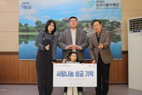 [½Åµ¿¾Æ¹æ¼Û °æ³²ÁøÁÖ=³²±Ã¿µ±â±âÀÚ] ÁøÁÖÅÇ·ëÀº 31ÀÏ ¿¬¸»À» ¸Â¾Æ Áö¿ª»çȸ ¾î·Á¿î ÀÌ¿ôÀ» µ½±â À§ÇØ ¸ÅÀå ¹ÙÀÚȸ Çà»ç ¼öÀÍ±Ý 120¸¸¿© ¿øÀ» ÁøÁֽú¹ÁöÀç´Ü¿¡ ±âŹÇß´Ù. À̹ø ±âºÎ±ÝÀº Áö¿ª ³» µµ¿òÀÌ ÇÊ¿äÇÑ ÀÌ¿ô¿¡°Ô µû¶æÇÑ ¿Â±â¸¦ ÀüÇϰíÀÚ ¸¶·ÃÇÑ ¸ÅÀå ¹ÙÀÚȸ ¡¦