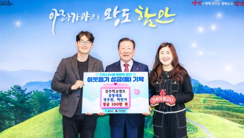 [½Åµ¿¾Æ¹æ¼Û °æ³²ÇÔ¾È=À̽ŵ¿±âÀÚ] ÇԾȱºÀº Áö³­ 2ÀÏ °­ÁÖÇб³Ä·ÇÁ°¡ ÀÌ¿ôÀ» ÇâÇÑ µû¶æÇÑ ¸¶À½À» ÀüÇÏ¸ç ¼º±Ý 100¸¸ ¿øÀ» ±âŹÇß´Ù°í ¹àÇû´Ù. À̹ø ±âŹÀº ³ª´®ÀÇ °¡Ä¡¸¦ Áö¿ª»çȸ¿Í ÇÔ²² ³ª´©°íÀÚ ¸¶·ÃµÆÀ¸¸ç, ±âŹµÈ ¼º±ÝÀº °æ³²»çȸº¹Áö°øµ¿¸ð±Ýȸ¸¦ °ÅÃÄ °ü³»¡¦