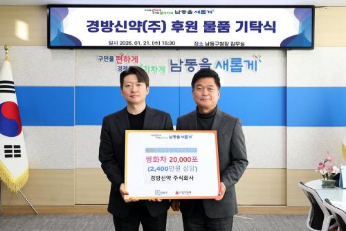 [½Åµ¿¾Æ¹æ¼Û ÀÎõ=À±¹Î½Ä±âÀÚ]ÀÎõ½Ã ³²µ¿±¸´Â Çѹæ ÀǾàǰ Àü¹® Á¦Á¶ ±â¾÷ÀÎ °æ¹æ½Å¾à(´ëÇ¥ ±èÃæÈ¯)À¸·ÎºÎÅÍ Ãë¾à°èÃþ Áö¿øÀ» À§ÇÑ ½ÖÈ­Â÷ 20,000Æ÷¸¦ ±âŹ¹Þ¾Ò´Ù°í 22ÀÏ ÀüÇß´Ù. ³²µ¿±¸´Â ±âºÎÀÚÀÇ ¶æ¿¡ µû¶ó °ü³» °Ü¿ïö °Ç°­¿¡ Ãë¾àÇÑ Àú¼ÒµæÃþ ¾î¸£½Å µî¿¡°Ô ¡¦
