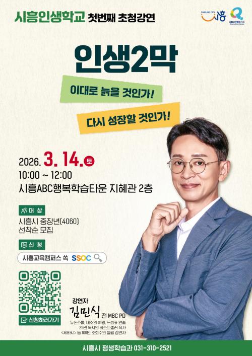 [½Åµ¿¾Æ¹æ¼Û ½ÃÈï½Ã=À̽ŵ¿±âÀÚ] ½ÃÈï½Ã´Â 4060 ÁßÀå³âÃþÀÇ »õ·Î¿î µµ¾à°ú ü°èÀûÀÎ »ý¾Ö ¼³°è¸¦ Áö¿øÇÏ´Â Æò»ýÇнÀ ºê·£µå ¡®½ÃÈïÀλýÇб³¡¯¸¦ »õ·Ó°Ô ¼±º¸À̰í, À̸¦ ±â³äÇÏ´Â ÃÊû °­¿¬À» °³ÃÖÇÑ´Ù. ¡®½ÃÈïÀλýÇб³¡¯´Â Àι® ±³¾ç, Áø·Î Ž»ö, »çȸÂü¿© µî ´Ù¾çÇÑ¡¦