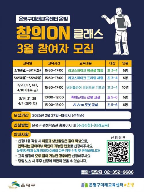 ¡°Ã¼ÇèÀ¸·Î ¹è¿ì´Â AI¡¤·Îº¿¡±¡¦ ÀºÆò±¸¹Ì·¡±³À°¼¾ÅÍ ¿Âºû, âÀÇON Ŭ·¡½º 3¿ù Âü¿©ÀÚ ¸ðÁý