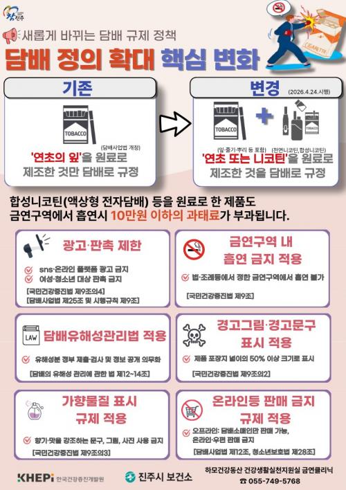 [½Åµ¿¾Æ¹æ¼Û °æ³²ÁøÁÖ=±è¸í¼ö±âÀÚ] ÁøÁֽô ´ã¹èÀÇ Á¤ÀǸ¦ È®´ëÇÑ ¡¸´ã¹è»ç¾÷¹ý¡¹ °³Á¤¾ÈÀÌ 24ÀϺÎÅÍ ½ÃÇàµÊ¿¡ µû¶ó ±Ý¿¬ ±¸¿ª¿¡ ´ëÇÑ Áöµµ Á¡°ËÀ» °­È­ÇÑ´Ù°í ¹àÇû´Ù. ¡¸´ã¹è»ç¾÷¹ý¡¹ °³Á¤¾È¿¡ µû¸£¸é ±âÁ¸ ¡®¿¬ÃÊÀÇ ÀÙ¡¯À» ±âÁØÀ¸·Î Çß´ø ´ã¹èÀÇ Á¤ÀǸ¦ ¡®¿¬ÃÊ ¶Ç¡¦