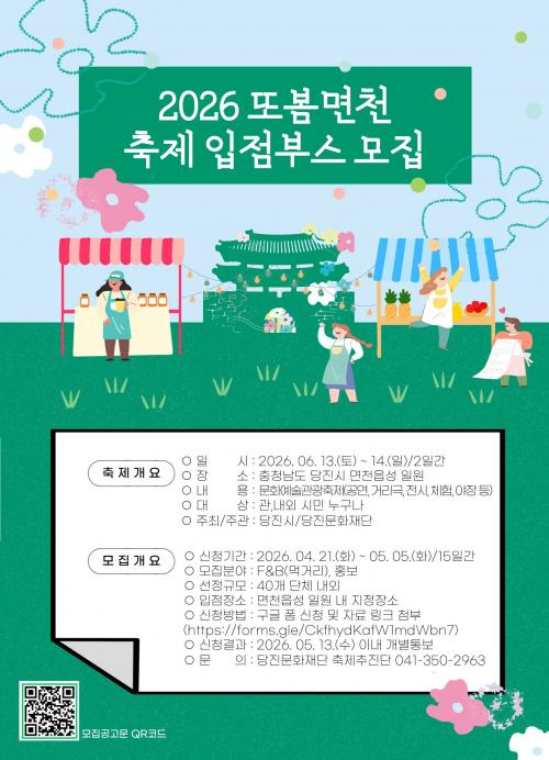 [½Åµ¿¾Æ¹æ¼Û=ÀÌÀçö±âÀÚ] (Àç)´çÁø¹®È­Àç´ÜÀº 2026³â 4¿ù 21ÀÏ(È­)ºÎÅÍ 5¿ù 5ÀÏ(È­)±îÁö¡®2026 ¶Çº½ ¸éõ¡¯ ÃàÁ¦ ÀÔÁ¡ºÎ½º¸¦ ¸ðÁýÇÑ´Ù°í ¹àÇû´Ù. À̹ø ¸ðÁýÀº Áö¿ª °æÁ¦ Ȱ¼ºÈ­¿Í ½Ã¹Î Âü¿©Çü ÃàÁ¦ ÄÜÅÙÃ÷ °­È­¸¦ ¸ñÀûÀ¸·Î ÁøÇàµÇ¸ç, ¸Ô°Å¸®(F&B), ǪµåÆ®·°, üÇ衦